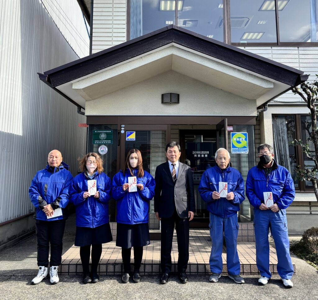 永年勤続表彰を行いました お知らせ 2026.01.21 このたび、永年にわたり当社を支えてくださった社員の皆さんに、永年勤続表彰を行いました。日々の業務への尽力と、会社への多大な貢献に心より感謝申し上げます。 これからも社員とともに成長できる企業を目指してまいります。 ← 前へ 一覧へ